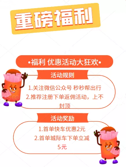 秒秒帮出行推出优惠活动,快车、城际车福利